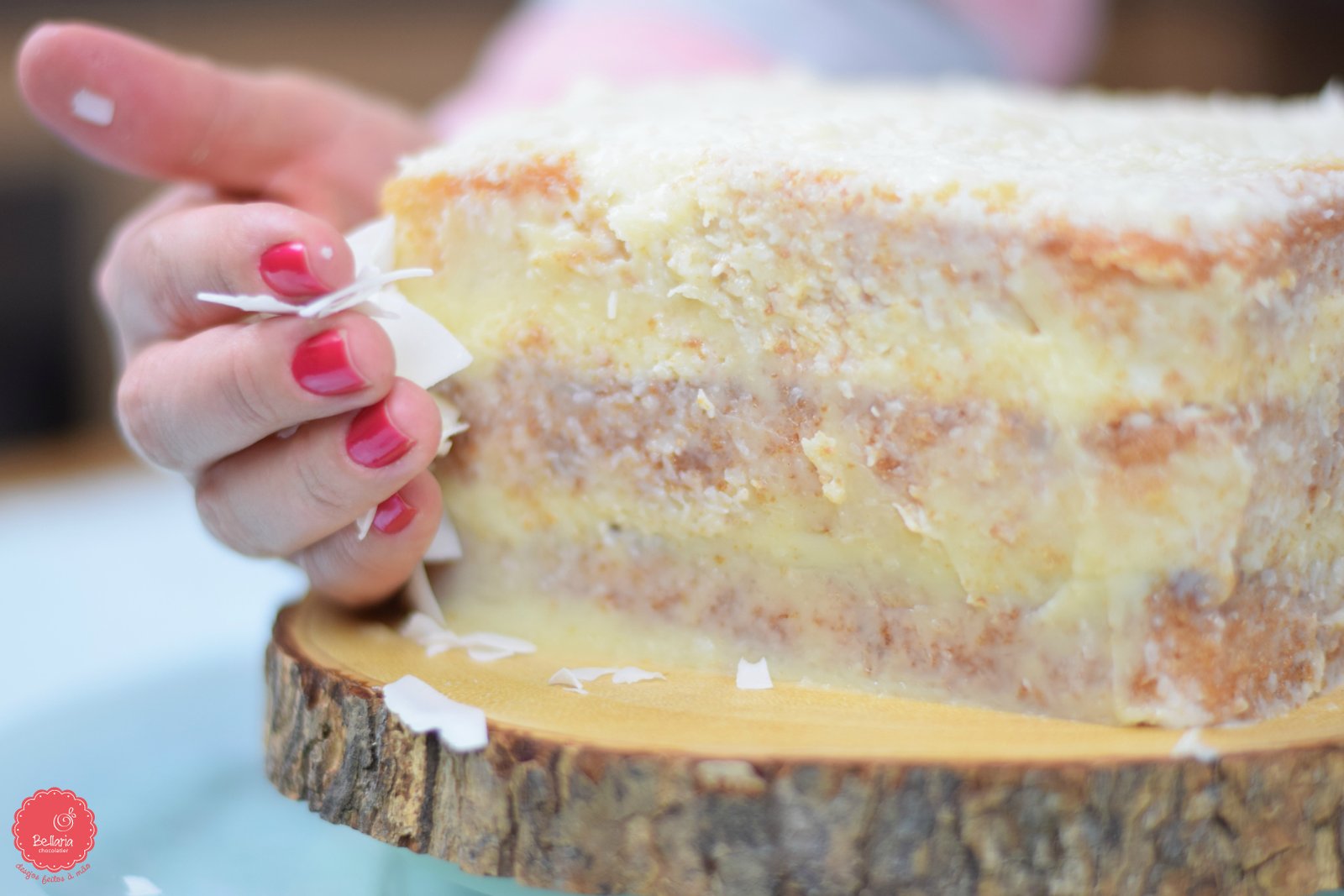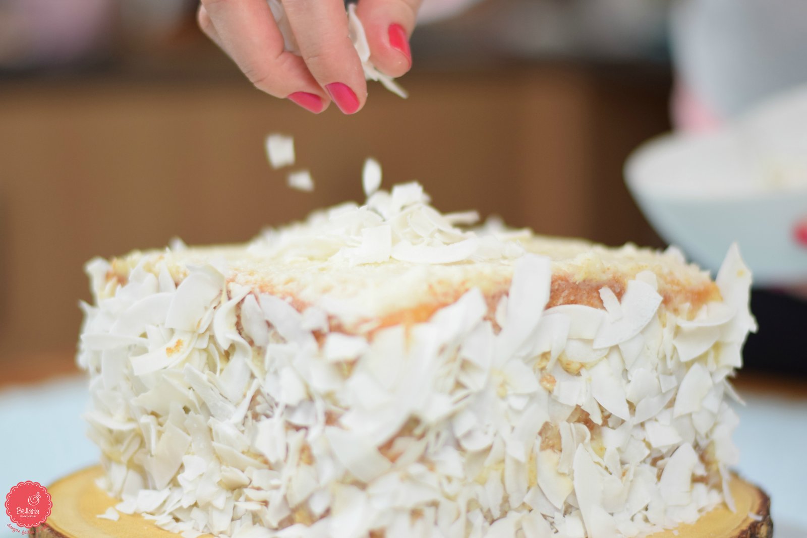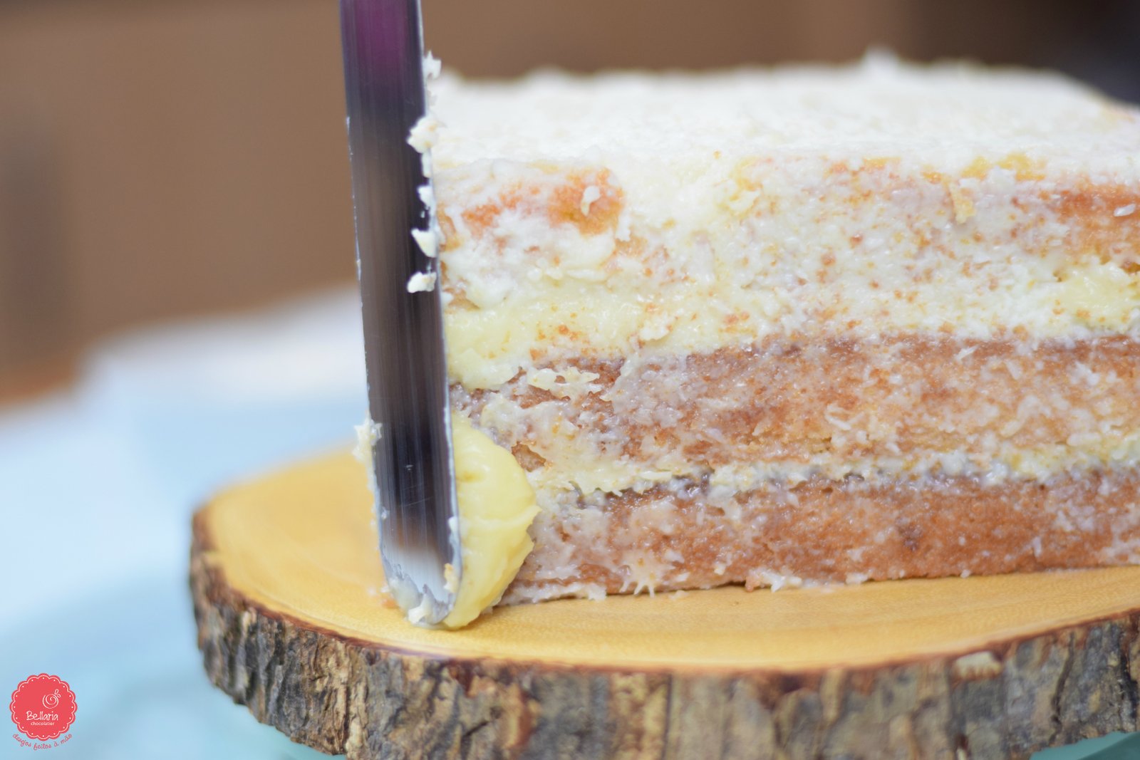 Reserve um pouco do recheio para lambuzar toda a lateral do bolo, caso queira decorá-lo com coco ralado no final.